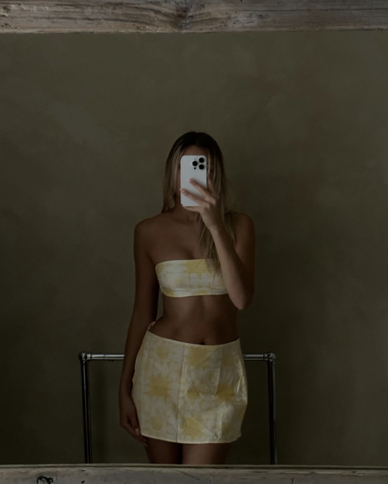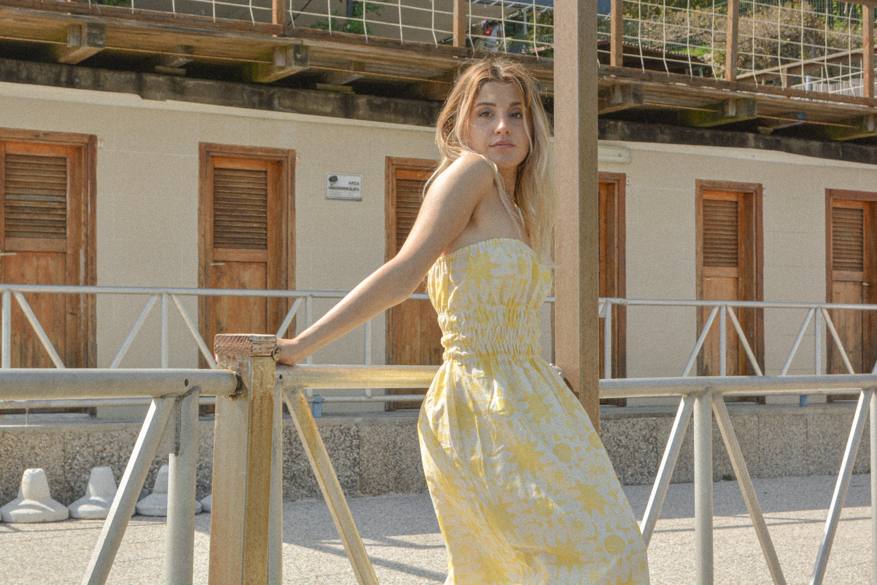 Il Sole; in Italian meaning the sun, is the inspiration for our hand painted print. Capturing the essence of summer the Il Sole print has a geometric base of hand painted sun motifs in a soft yellow tone. Encapsulating everything Oria Swim the collection reminisces sun kissed days and all the memories made in the long summer sun.